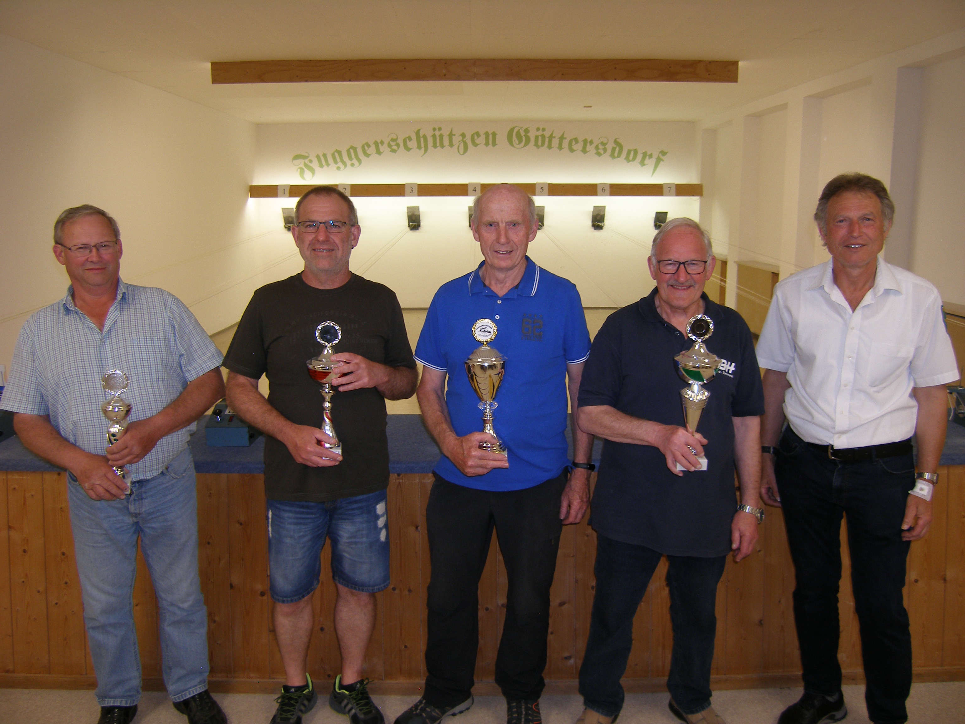 Die Luftgewehr-Aufgelegt Mannschaft der Fuggerschützen Göttersdorf konnte nach der Vorrunde in der Gauoberliga Vilshofen einen großen Erfolg verzeichnen. Nach fünf Wettkämpfen nehmen Franz Sales Bauer, Erich Auer und Franz Flieger mit 8:2 Punkten den 1. Platz ein und dürfen sich Herbstmeister (21. November 2022) nennen. So gewann man zu Hause gegen Kirchberg v. Wald mit 920 zu 914,7, in Aldersbach musste man eine 927,6 zu 936,1 Niederlage hinnehmen, die nächsten drei Wettkämpfe konnte man jedoch wieder gewinnen. So in Osterhofen 924,0 zu 921,5, gegen Gaishofen 930,1 zu 915,8 und mit dem besten Ergebnis gegen Vilshofen von 934,5 zu 923,3 Ringen. Franz Sales Bauer konnte mit seinem stärksten Ergebnis 315,4 Ringe erzielen und Erich Auer 315,0 Ringe.