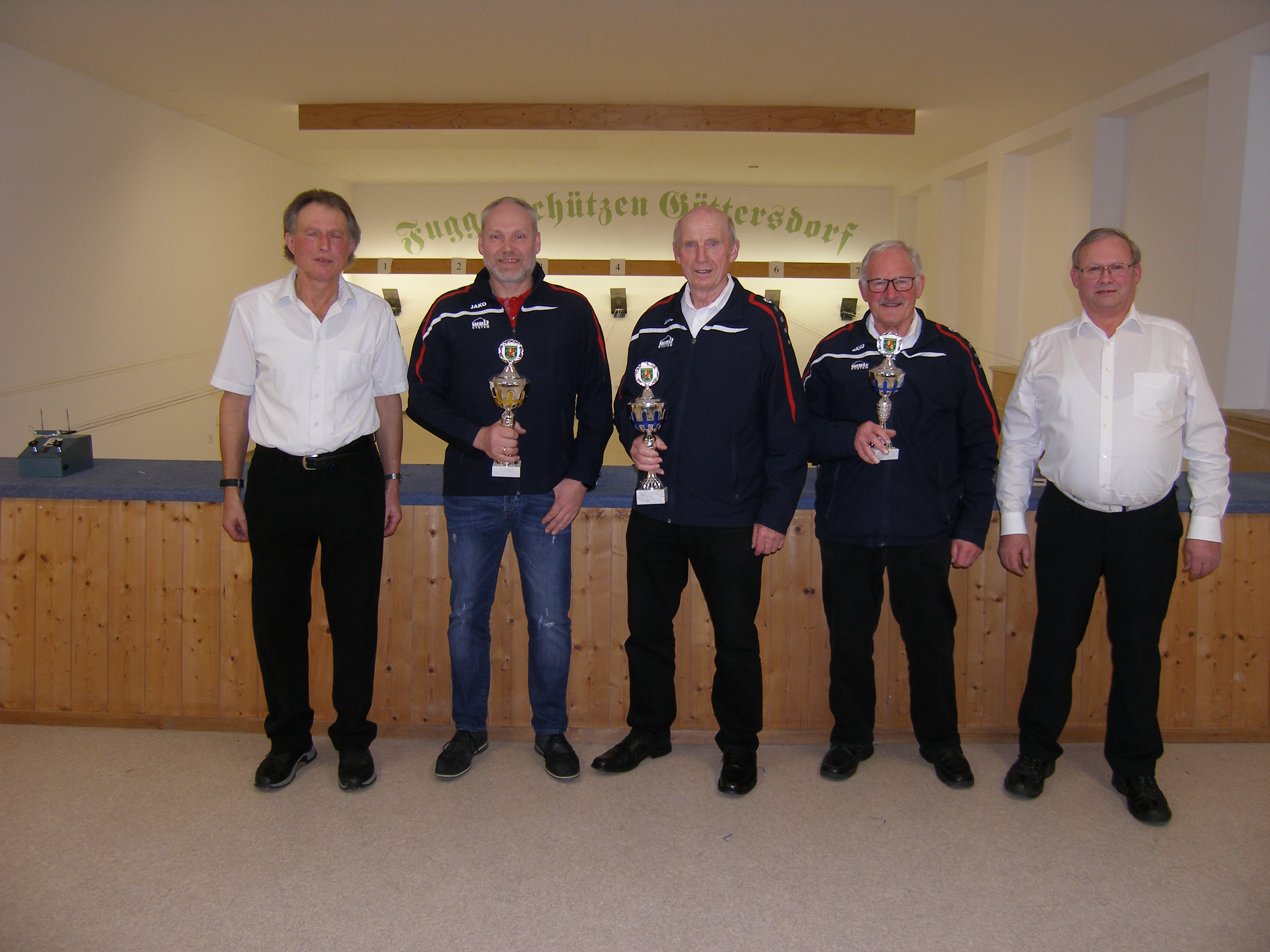In ihrem Schützenheim trugen die Fuggerschützen Göttersdorf an den Schießabenden in den zurückliegenden Wochen ihr Königsschießen aus. Für die Luftgewehr-Aufgelegt-Schützen wurde ein eigener König ausgeschossen. Es gab jedoch wenige wertbare Teiler. Schützenmeister Siegmund Eiblmeier und sein Stellvertreter Hans Schwinghammer konnten zum Abschluss in der Wertung Luftpistole/Luftgewehr am 2. Februar 2024 an Silvio Schmidt als Schützenkönig den Siegerpokal überreichen.